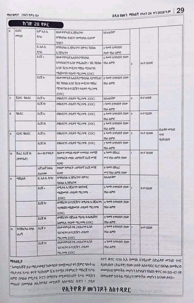 Interested applicants who meet the requirements are invited to submit their CV along with non returnable credentials within 10 working days from this announcement to Ethiopia Roads Administration by post ✉️ mail