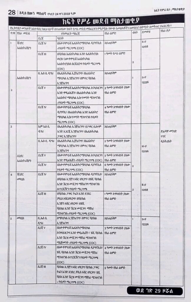 Please enlarge the image below to view the current job openings at the Ethiopia Roads Administration.