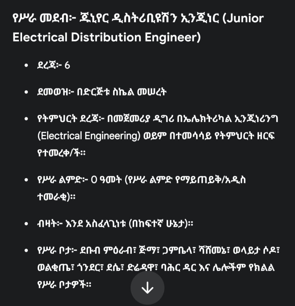Ethiopian Electric Utility is inviting qualified and competent applicants to apply for the vacant positions listed below on a permanent basis.